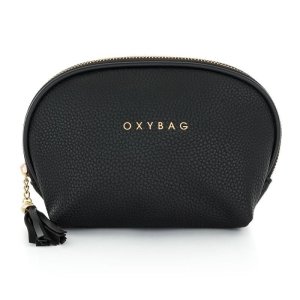 Cestovná okrúhla kozmetická taška v čiernom prevedení.