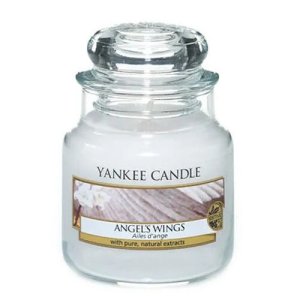Aromatická sviečka Classic malá Angel's Wings v sebe ukrýva něžnú krémovú vôňu bielych kvetov, cukrovej mriežky a vanilky.