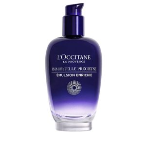 Pleťová emulzia s mliečnou textúrou as obsahom extraktu zo slamienky a kyseliny hyalurónovej pomáha bojovať s prvými známkami starnutia pleti.