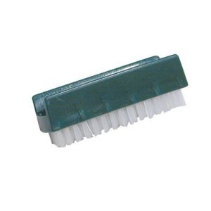Obojstranná kefka s drevenou základňou, vhodná na čistenie nečistôt z rúk.