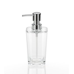 Elegantný dávkovač mydla alebo dezinfekcia vyrobený z kvalitného plastu s priehľadnou nádobkou.