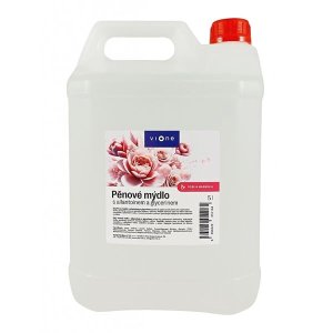 Bohatá a jemne krémová pena s glycerínom a alantoínom pre každodennú starostlivosť o ruky a telo Vhodné na dolievanie do dávkovača na penové mydlo Objem 5 l