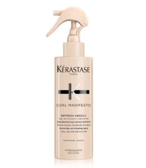 Ľahká hmla v spreji Kérastase Curl Manifesto Refresh Absolu Spray dodáva vlasom okamžité osvieženie, hydratáciu a reaktivuje tvar vlnitých a kučeravých vlasov.