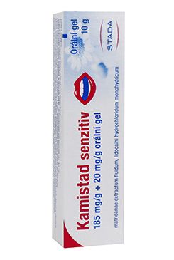 Kamistad senzitív, orálny gél sa používa pri menej závažných infekciách ďasien a sliznice dutiny ústnej u dospelých a dospievajúcich od 12 rokov (prejavujúcich sa napr. začervenaním, zdurením, tvorbou vriedkov alebo pľuzgierikov, krvácavosťou a bolestivosťou ďasien, alebo ako bolesti ďasien alebo na jazyku). Dávkovanie a spôsob použitia Dospelí a dospievajúci od 12 rokov Aplikujte ? cm dlhý prúžok orálneho gélu Kamistad senzitív trikrát denne na bolestivé a zapálené miesta a jemne vmasírujte. Liečivé látky sú lidokaíni hydrochloridum monohydricum a matricariae extractum fluidum (lidokaín a výťažok z kvetov harmančeka). Ďalšie zložky sú roztok benzalkóniumchloridu, silica kôry škoricovníka cejlónskeho, dihydrát sodnej soli sacharínu, karbomer, trometamol, kyselina mravčia, etanol 96% (V/V), čistená voda. KontraindikácieKamistad senzitív sa nemá používať u detí mladších ako 12 rokov, pretože nie je k dispozícii dostatok údajov. Pozorne čítajte písomnú informáciu pre používateľov.