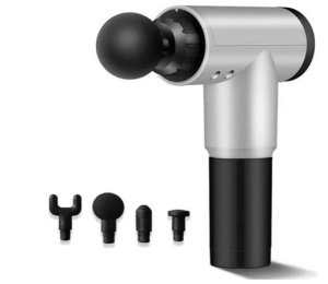 Masážna pištoľ Mini s výkonnou batériou a štyrmi nastaviteľnými hlavicami.