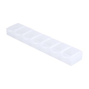 Plastový, týždenný box na pilulky, so 7 priehradkami Rozmer: 14,5 x 1,6 x 3,3 cm