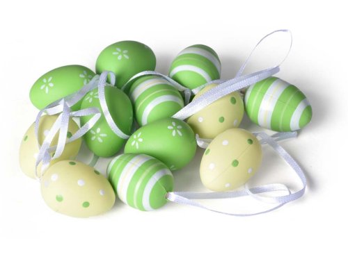 Kraslice 12 ks 40mm rôzne vzory v organzovom sáčku, zelená, biela