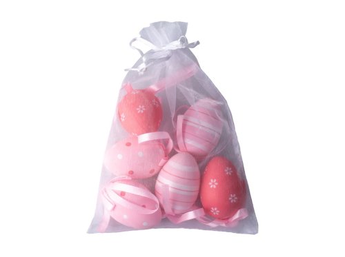 Elegantná sada šiestich kraslíc o veľkosti 60 mm v krásnom organzovom sáčku. Každé vajíčko je zdobené iným vzorom a farebným prevedením, takže celok pôsobí veľmi pestrým a dekoratívnym dojmom. Ideálna na veľkonočnú výzdobu, zdobenie vetvičiek, stolov alebo ako malý darček. Vajíčka sú ľahké, odolné a vďaka opakovanému použitiu vám spríjemnia Veľkú noc aj v ďalších rokoch. Tovar je dodávaný v mixe. Doručovaný tovar je vyberaný náhodne a nie je možné vybrať konkrétne prevedenie.