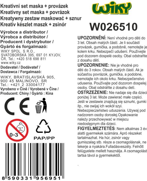Kreatívny set vytvor si masku. Obsahuje: maska, povrázok, ozdoby Rôzne farebné prevedenie