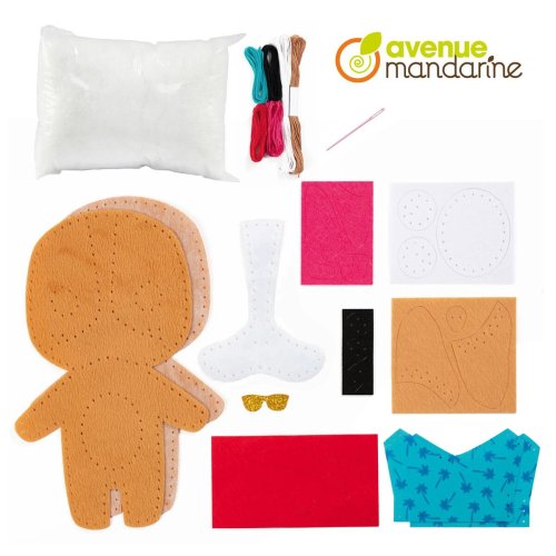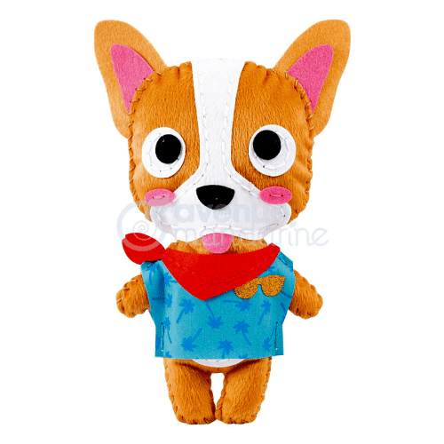 SADA OBSAHUJE:, * predierované kusy plsti, * lepiace kusy plsti, * vypchávkovú vatu, * plastovú ihlu, * 3 alebo 4 špulky nití, * návod, VHODNÉ PRE DETI OD 6-10 ROKOV, ROZMERY BALENIA: 14 X 24 CM