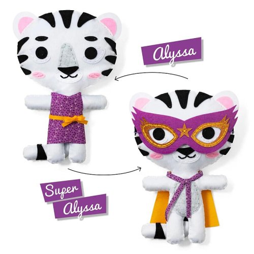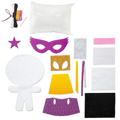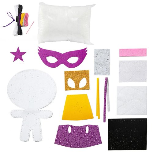 SADA OBSAHUJE:, * predierované kusy plsti, * lepiace kusy plsti, * vypchávkovú vatu, * plastovú ihlu, * 3 alebo 4 špulky nití, * návod, VHODNÉ PRE DETI OD 6-10 ROKOV, ROZMERY BALENIA: 18 X 30 CM