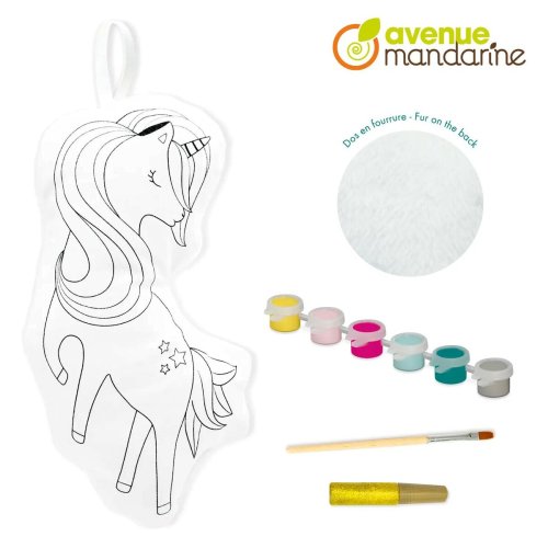 SADA OBSAHUJE:, * bavlneného jednorožca Simone s potlačou o veľkosti 24 cm, * 6 téglikov s farbami, * 1 štetec, * tubu s trblietkami, VHODNÉ PRE DETI OD 6-10 ROKOV, ROZMERY BALENIA: 14 X 28 CM