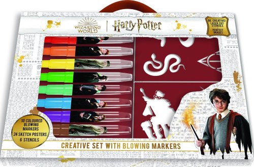 Objav svet mágie s touto kreatívnou sadou fúkacích fixiek s motívmi Harryho Pottera. Stačí len nasadiť fixku do držiaka, fúknuť – a vznikne originálny sprejový efekt. S pomocou tematických šablón si deti môžu vytvoriť vlastné umelecké diela s motívmi Rokfortu, relikvií smrti, okuliarov s jazvou a ďalších ikonických symbolov zo sveta kúziel.