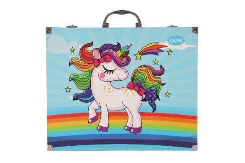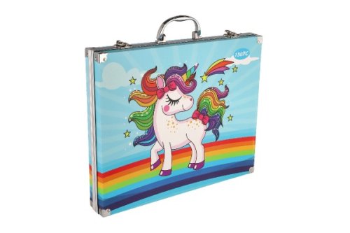 Prebuďte svoju kreativitu! Tento set obsahuje 150 rôznych pomôcok v praktickom kufríku s motívom jednorožca. Perfektný na maľovanie, kreslenie a ďalšie umelecké aktivity. Ideálne pre deti aj dospelých. Rozmery kufríka: 36 x 31 x 5 cm Vhodné pre deti od 3 rokov