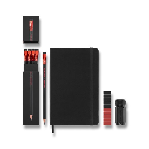 ZÁPISNÍK MOLESKINE - TVRDÉ DOSKY, Zápisník s pevnou, v chrbte šitou väzbou v kartónových doskách potiahnutých látkou obopnuté pružnou páskou proti samovoľnému otváraniu. Zápisník vybavený vreckom na vizitky a drobnosti, ktoré je vyrobené z tkaniny a kartónu, textilnou záložkou a letákom s históriou MOLESKINE., Gramáž papiera 100 g/m², neobsahuje kyseliny. Papier v slonovinovej farbe, vyrobený z FSC certifikovaného dreva., ROZMER: 13 x 21 cm, 88 listov, čistý., , GRAFITOVÁ CERUZKA BLACKWING - 4 KS, Grafitová ceruzka v limitovanom prevedení NASA s prémiovým japonským grafitovým jadrom a gumou.