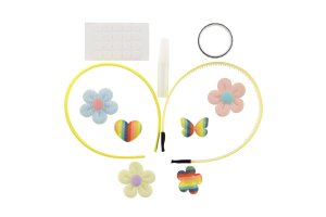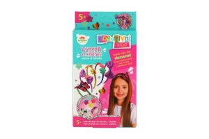 Originálna sada, s ktorou si deti môžu samy vytvoriť krásne a jedinečné čelenky. Každé balenie je malé prekvapenie – po otvorení zistíte, aké farby, ozdoby a doplnky vo vnútri čakajú. Výroba je jednoduchá a zábavná, takže sa do nej môžu pustiť deti už od 5 rokov. Obsah balenia: 2 základné čelenky na ozdobenie a rôzne dekorácie a doplnky. Rozvíja fantáziu, kreativitu a jemnú motoriku. Vhodné ako darček pre malé tvorivé parádnice.