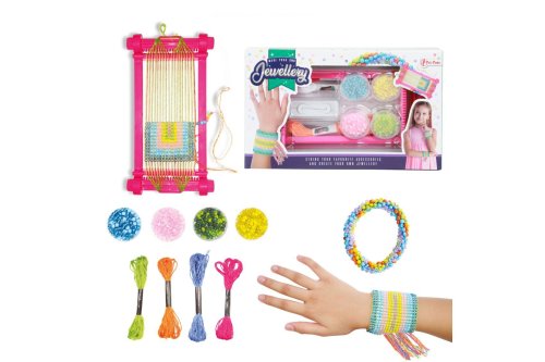 Upleť si svoj náramok, ktorý sa bude hodiť k tvojmu outfitu. Skvelá zábava na voľné chvíle. Vytvorte si šperk skutočne originálny, ktorý nebude mať nikto iný! Sada obsahuje 4 farebné bavlnky, 4 farby korálikov a pletací stav. Rozmery výrobku 25 x 15 x 3 cm. Vhodné pre deti od 8 rokov.
