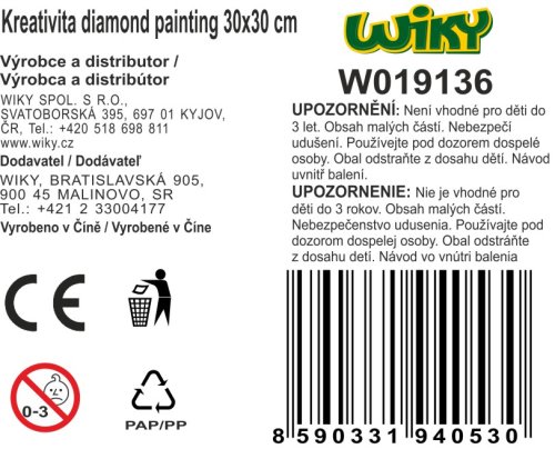 Kreativita diamond painting o veľkosti 30x30 cm Mix motívov. 12 rôznych motívov.