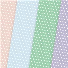 Jednostranne potlačený kvalitný papier Z jednej strany pastelová farba s bielymi bodkami Druhá strana biela hladká 4 farby v balení (ružová, modrá, zelená, fialová) 5 ks A4 v každej farbe Formát: A4 Gramáž: …