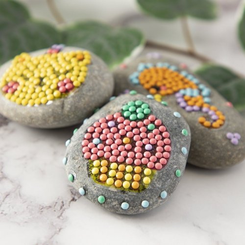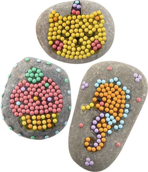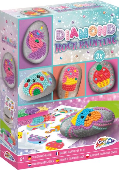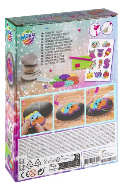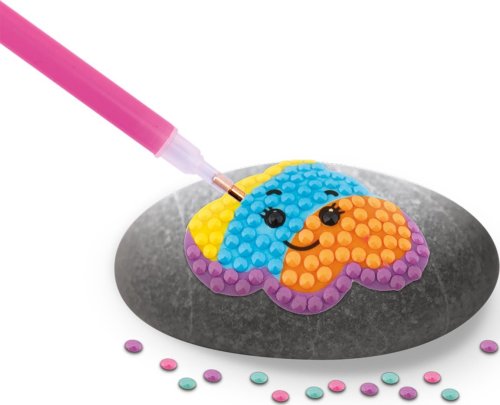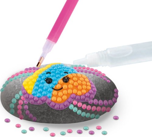 Kreatívny set diamantové maľovanie a zdobenie kamienkov, balenie obsahuje 3 kamienky, list samolepiek, viac ako 1500 kusov diamantov, tácka a lepiace pero 21x15,5 cm