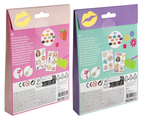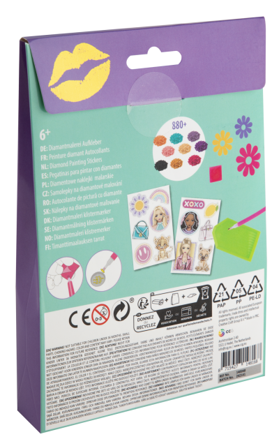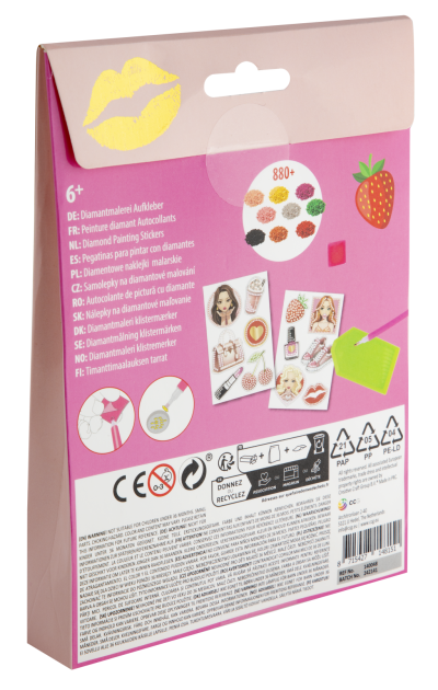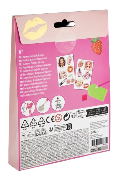 Kreatívny set diamantové maľovanie samolepky obsahuje 12 kusov samolepiek na vytvorenie, kamienky/diamanty, aplikačné pero, lepiace štvorček a tácka, 18x13x2,5 cm