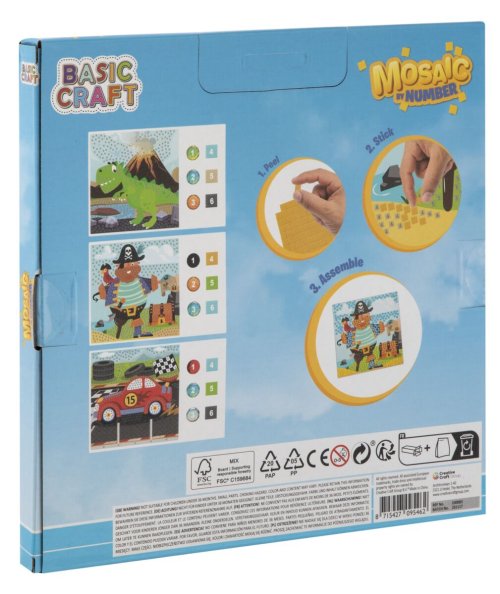 Kreatívny set mozaika podľa čísel 22x22 cm, nalep správne priložené samolepiace prvky podľa čísel a vytvor si krásny obrázok, sada obsahuje 3 rôzne obrazy/predlohy