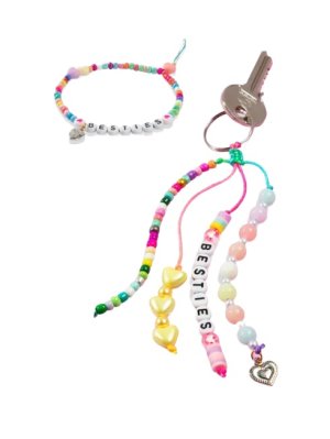 Kreatívny set pomocou ktorého si vyrobíš úžasný náramok a tiež prívesok, ktorý si môžeš dať napríklad na kľúče, na batoh alebo ho treba venovať svojej najlepšej kamarátke, 18x8 cm, sada obsahuje všetko potrebné na výrobu - korálky, prívesky, povrázky