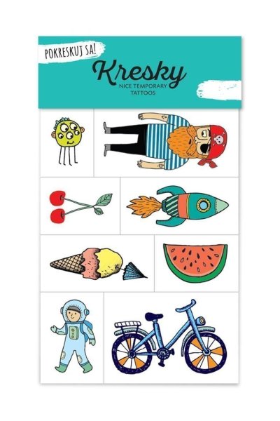 Slnko, voda, zmrzlina! Zabite nudu s milými a hravými tetovačkami, ktoré urobia prázdniny aj z bežných dní. Dočasné tetovanie neaplikujte na citlivú pokožku, v blízkosti očí alebo v prípade alergie. Dermatologicky testované, bezpečné pre deti.