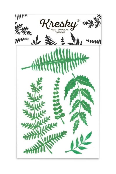 Moderné papradie nám medzi Kreskami chýbalo! Toto vzniklo v spolupráci s českou umelkyňou Katkou Tichaiovou alias prírodahoľok. Katka chodí za nápady predovšetkým do krivoklátskych lesov a vnemy z nich pretavuje do prírodných linorytov. Dočasné tetovanie neaplikujte na citlivú pokožku, v blízkosti očí alebo v prípade alergie. Dermatologicky testované, bezpečné pre deti.