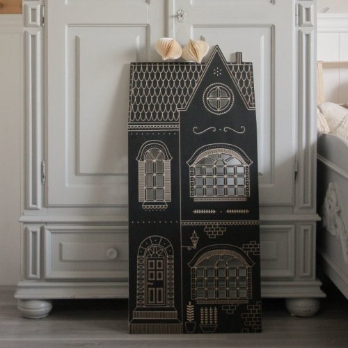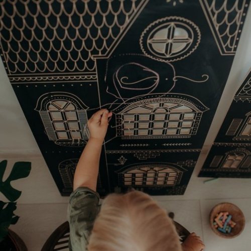 Veľký drevený dom so 4 kriedami rozvíja grafomotorické schopnosti, podporuje kreativitu a fantáziu.