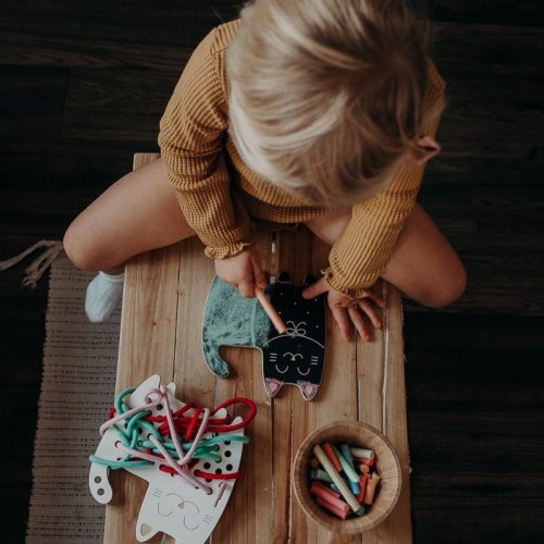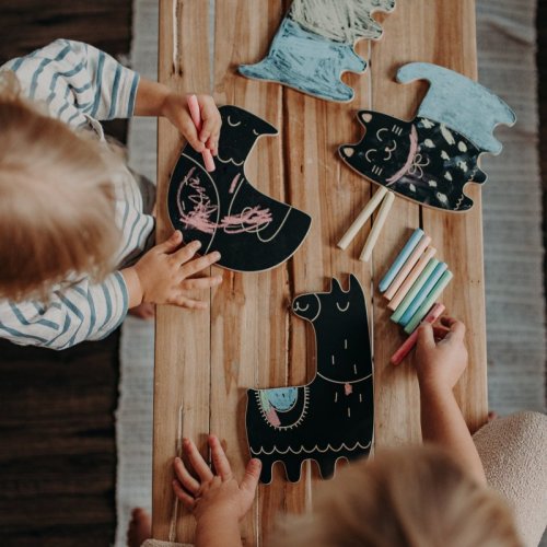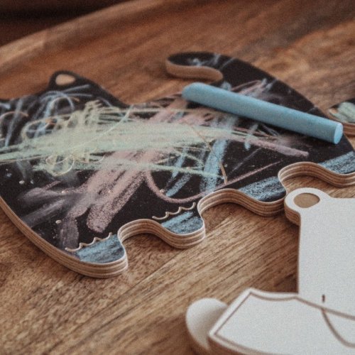 Drevená tabuľka so 4 kriedami rozvíja grafomotorické zručnosti, podporuje kreativitu a fantáziu.