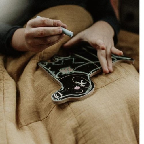 Drevená tabuľka so 4 kriedami rozvíja grafomotorické zručnosti, podporuje kreativitu a fantáziu.