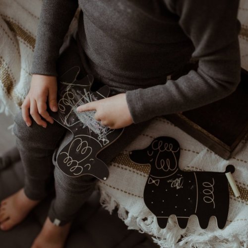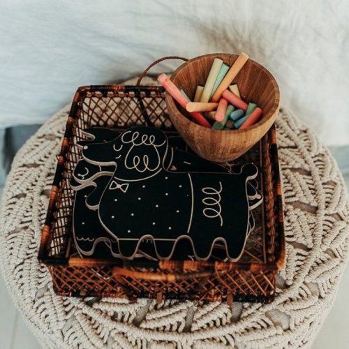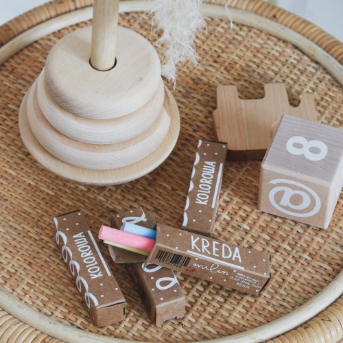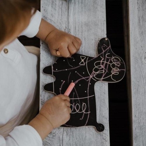 Drevená tabuľka so 4 kriedami rozvíja grafomotorické zručnosti, podporuje kreativitu a fantáziu.