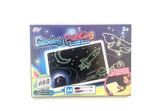 Kresliaca tabuľka svietiaca v tme je inovatívna kreatívna pomôcka určená pre deti od troch rokov, ktorá ponúka zábavu aj rozvoj fantázie bez neporiadku. Tabuľka má rozmer A4 a jej povrch umožňuje kreslenie špeciálnou svietiacou ceruzkou, ktorá pri kreslení vytvára svetelné obrazce, ktoré po zhasnutí miestnosti žiaria v tme. Vďaka tomu deti môžu tvoriť „kúzelné“ obrázky, ktoré je možné opakovane mazať a znovu kresliť, čím podporujú svoju kreativitu a predstavivosť.