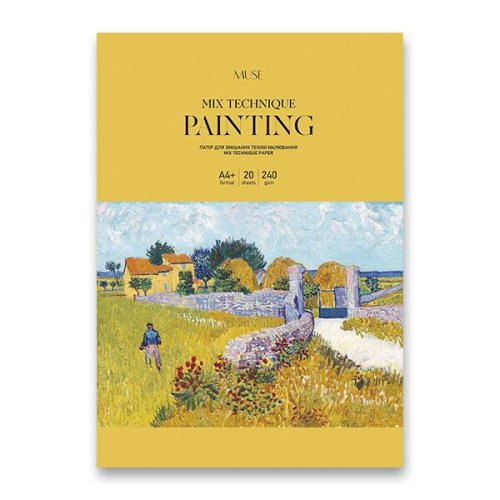 Kresliaci kartón biely (tzv. „štvrtky“), vo formáte A4+ (225 x 315 mm). Kartónový rad Mix Technique Painting, gramáž 240 g/m², je vhodný pre širokú škálu výtvarných techník od pera, pastelu až po akvarelové alebo akrylové farby. Jednotlivé archy kartónu sú uložené v kartónových doskách s výtvarnými motívmi.