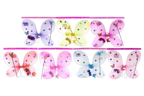 Párty krídla s kvietkami. Balenie obsahuje krídla, čelenku a paličku.