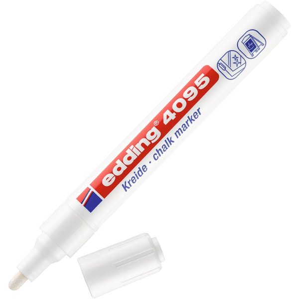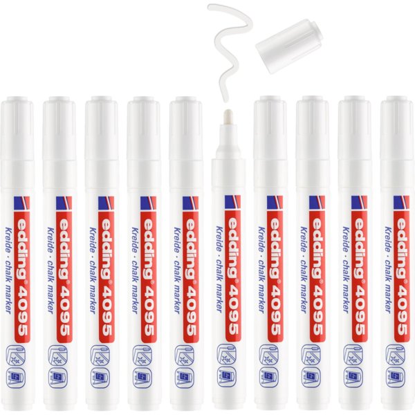 Kriedový popisovač na tabule a sklo Obsahuje tekutú kriedu na báze vody Použitie na tmavé tabule alebo na popis zrkadiel a skla Zmazateľný vlhkou handričkou zo všetkých neporéznych materiálov Okrúhly hrot Šírka …