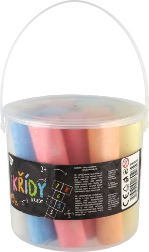 Balenie farebných kried v praktickom vedierku. Obsahuje 15ks chodníkových kried. Vhodné na maľovanie na tabuľu, drevo, ale aj na asfalt. Kreslenie rozvíja u detí kreativitu, fantáziu, šikovnosť, zručnosť, jemnú motoriku a ďalšie. Rozmery balenia 12 x 11 x 12 cm Vhodné pre deti od 3 rokov