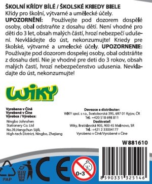 Biele školské kriedy. 12 ks v balení. Rozmer kriedy: 8 x 1,1 cm.