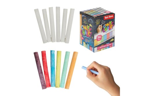 Klasické tabuľové kriedy v praktickom balení na každodenné písanie, kreslenie a výučbu. Kombinácia bielych a farebných kusov ponúka variabilitu na písanie aj zvýraznenie. Vhodné pre: školské tabule (klasické aj domáce), detské kreslenie vonku na chodník, dekoratívne nápisy (napr. na menu tabuliach). Rozmery balenia 6 x 9 x 6 cm Vhodné pre deti od 2 rokov