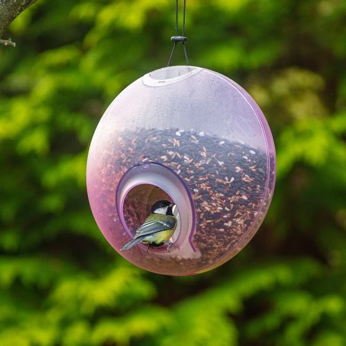 Kŕmidlo s veľkokapacitným zásobníkom umožňuje menej časté dopĺňanie vtáčej potravy.
