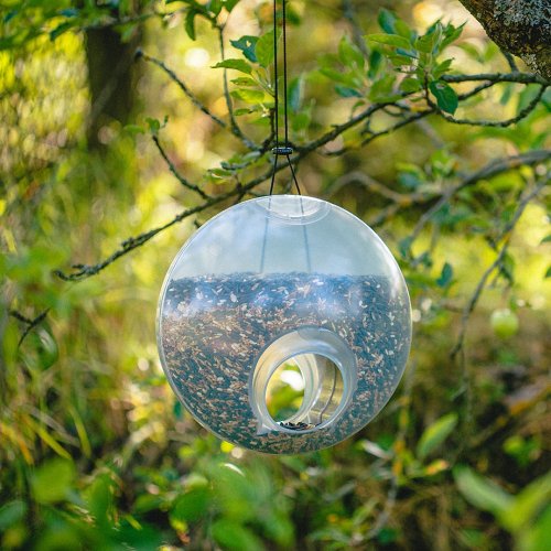 Kŕmidlo s veľkokapacitným zásobníkom umožňuje menej časté dopĺňanie vtáčej potravy.