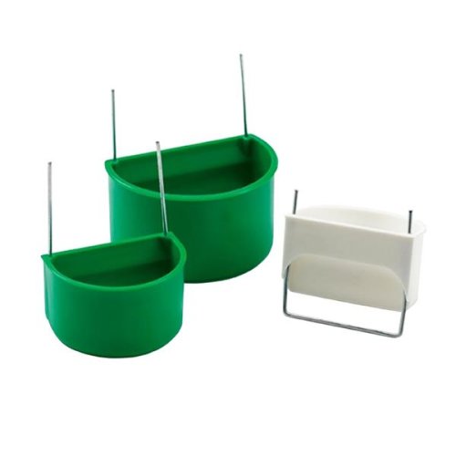 Polkruhové krmítko/napájačka pre papagáje. Kŕmidlo s uchytením do klietky je použiteľné na vodu aj sypanú stravu. Rozmery: 5,5 x 3 cm (šírka x výška nádobky).