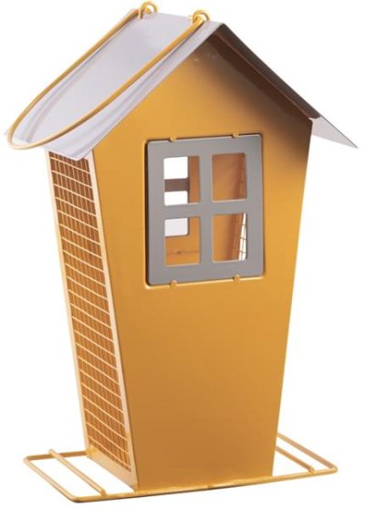 Závesné kovové vonkajšie krmítko na orechy v tvare domčeka. Kŕmidlo ľahko naplníte vyháknutím ucha na zavesenie a odobratím strechy. Vtáky majú prístup k orieškom z oboch bočných strán kŕmidla.