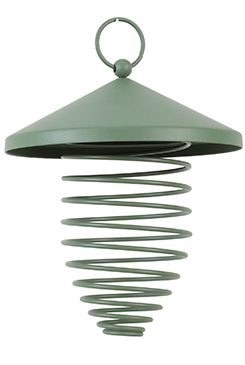 Závesné kovové krmítko v tvare špirály na 2 lojové gule, so strieškou. Výška špirály 11cm. Dodávané bez gulí.