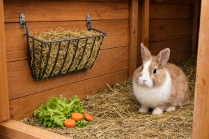 Závesné jasle klasické malé s horným plnením pre králiky.