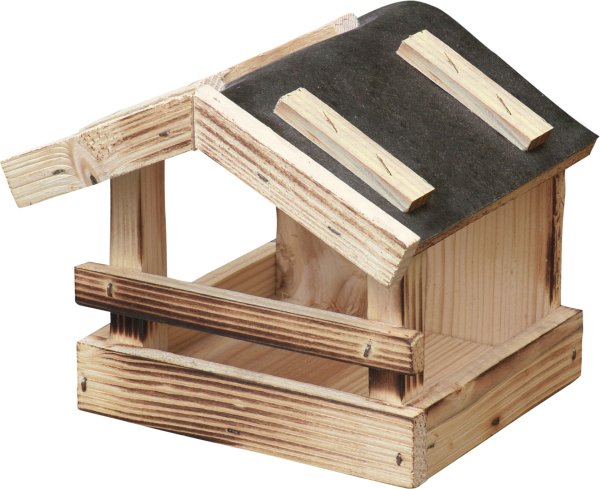 Drevené krmítko určené na prikrmovanie vonkajšieho vtáctva prevažne v zimných mesiacoch. Rozmery: 295 mm (š) x 223 mm (v) x 350 mm (h).