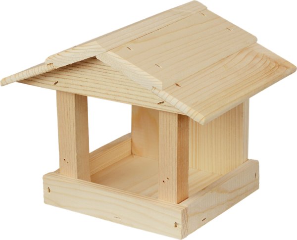 Drevené kŕmidlo pre vtáky. Výška: 19 cm, šírka: 24 cm, hĺbka: 19 cm.