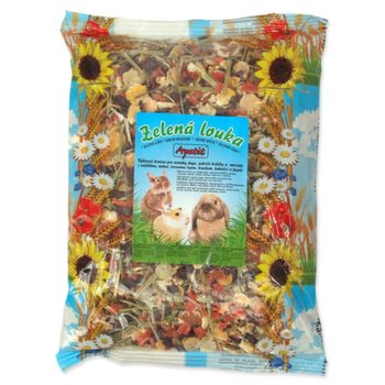 Zloženie: lúčne byliny, kukuričné vločky, hrachové vločky, mrkvové vločky, sójové vločky, fazuľové vločky, vločky z červenej repy.