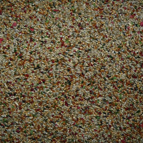 zloženie: lesknica, proso žlté, proso biele, proso červené, ovos bezpluchý, extrudovaná pšenica a kukurica, drvené morské lastúry, ľan, safrol, konopné semeno, sušené jablká.